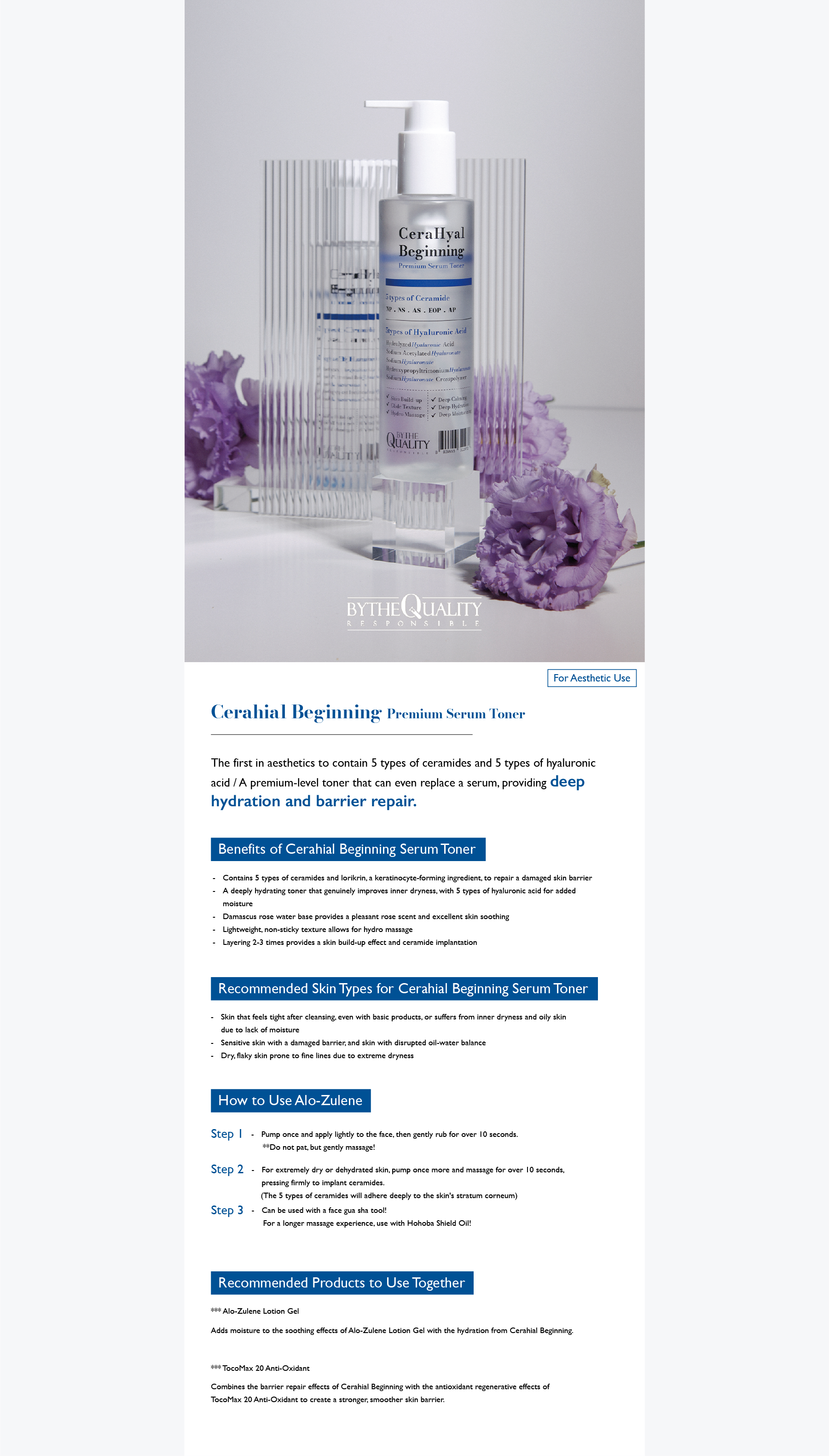 The first in aesthetics to contain 5 types of ceramides and 5 types of hyaluronic acid / A premium-level toner that can even replace a serum, providing deep hydration and barrier repair.