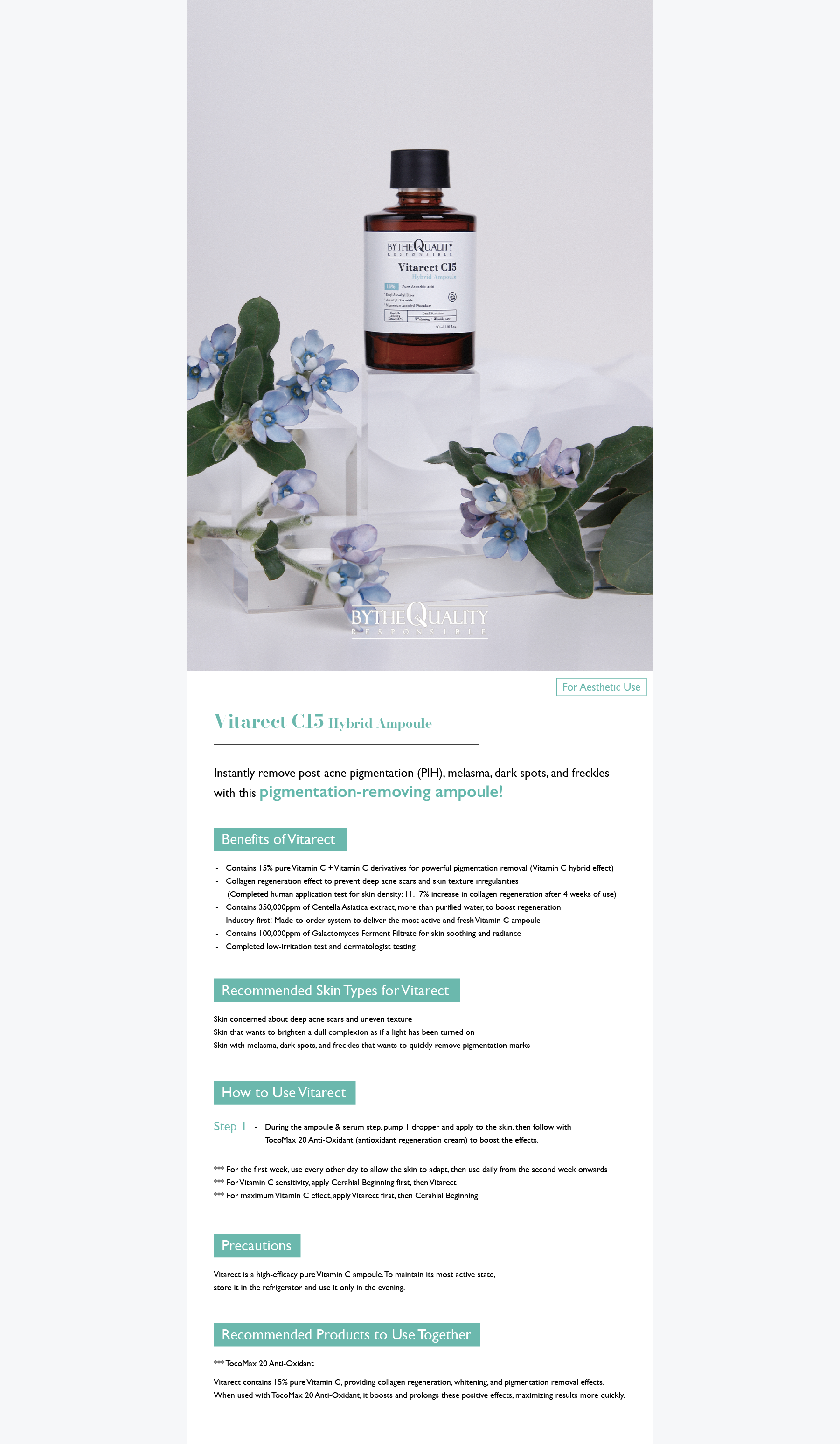 Dual functionality (whitening + wrinkle improvement) / Prevent red marks and skin depth differences after acne / Increased collagen regeneration by 11.17% with 4 weeks of use